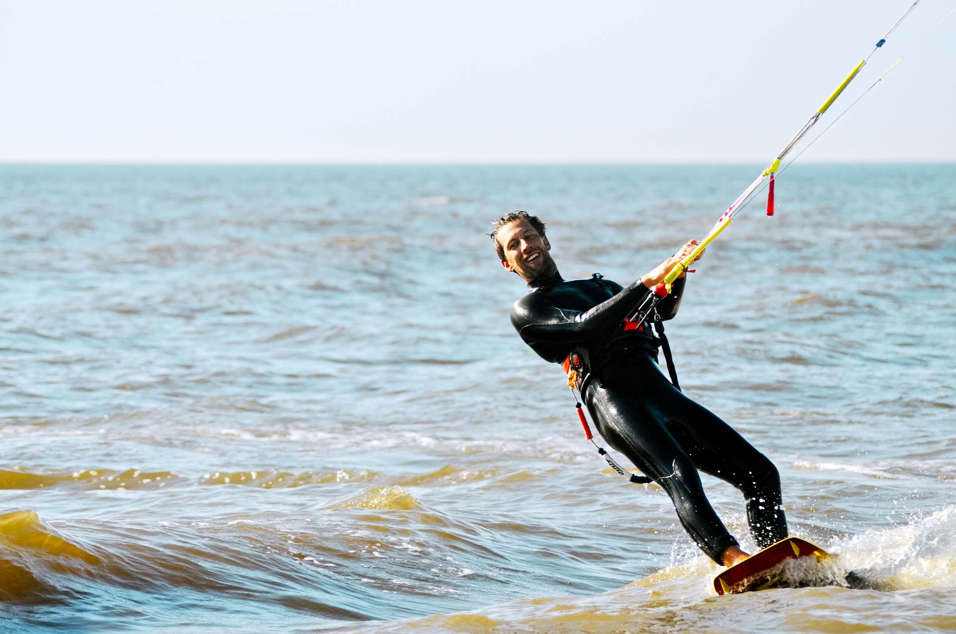 Einen Neoprenanzug, Trapez und Kitematerial bekommst du natürlich von uns.